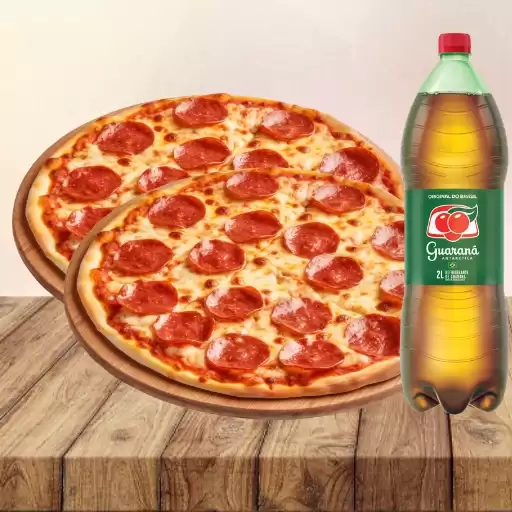 Pizza calabresa + Pizza frango com catupiry +Guaraná 2L
