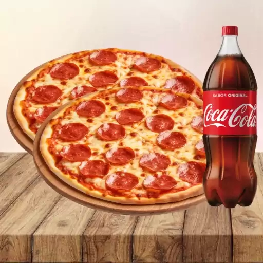 Pizza calabresa + Pizza frango com cream cheese + Coca-Cola 1,5L